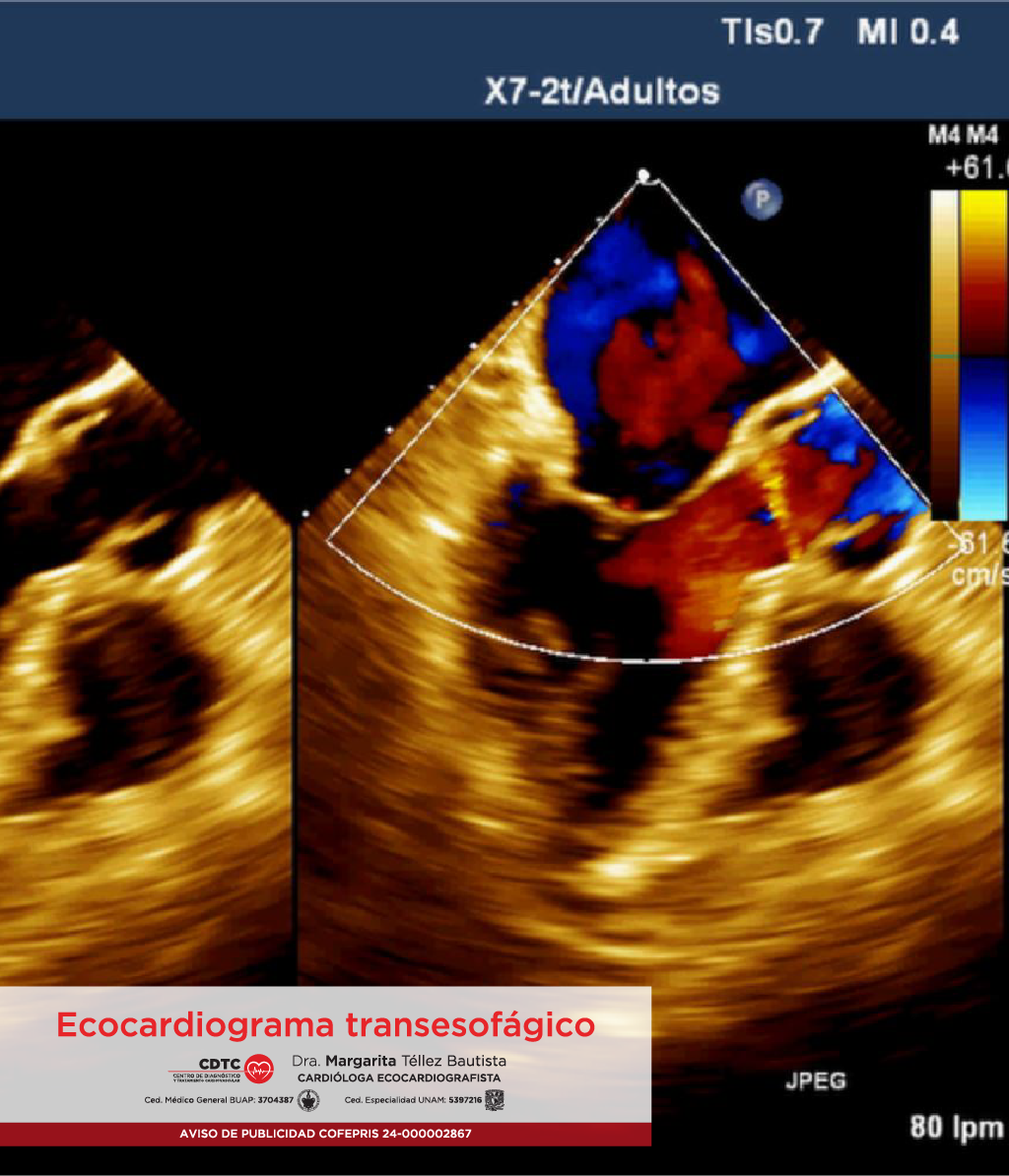La ecocardiografía transesofágica (ETE), consiste en introducir una sonda flexible, la cual tiene integrado un transductor de ultrasonido en la punta; esta sonda se introduce por la boca hasta llegar a la porción media del esófago, se emiten ondas sonoras que nos permiten visualizar con mayor detalle el tamaño, la forma y la movilidad de las estructuras cardiacas o si existen pequeños trombos.
