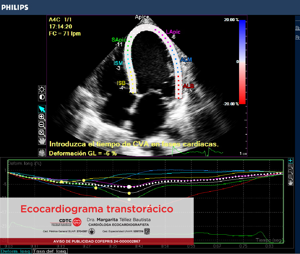 El ecocardiograma transtorácico es un estudio no invasivo, en el cual se emiten ondas sonoras a través de un transductor que convierte la señal de ultrasonido en imágenes de las estructuras cardiacas. De esta manera podemos evaluar con precisión en tiempo real la anatomía y función del corazón y así detectar enfermedades cardiacas.