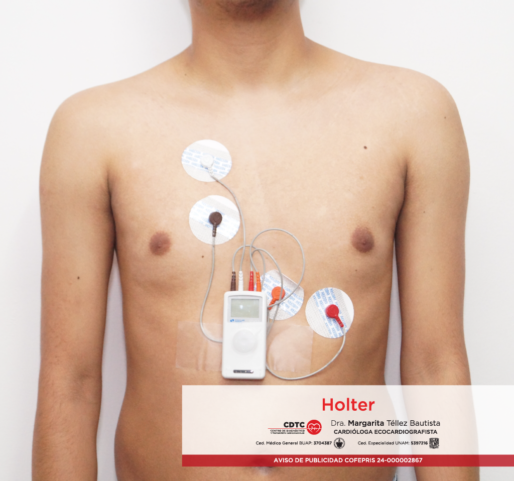 Un monitoreo Holter consiste en colocar en el consultorio una grabadora pequeña la cual registra el ritmo cardiaco durante veinticuatro, cuarenta y ocho horas y hasta siete días; lo que nos permite identificar alteraciones en el ritmo cardiaco como son: bloqueos auriculo-ventriculares, pausas, bradicardia o taquicardia, fibrilación auricular paroxística, taquicardia paroxística supraventricular, entre otras.